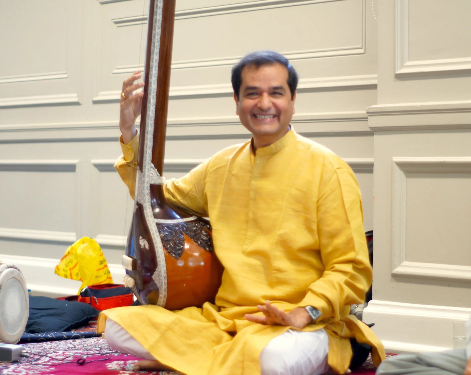 The workshop was followed by a concert by Udayji in the Victorian Art Gallery of the New Walk Museum, where the paintings and sculptures from great artists set the mood of excellence in Art! Udayji performed Bhoop, the same raga he had taught in the workshops, and over the course of more than an hour he showed us the depths and emotions he could convey in this sometimes overlooked raga. This was followed by deeply moving rendition of Saraswati, a very beautiful raga with South Indian roots.